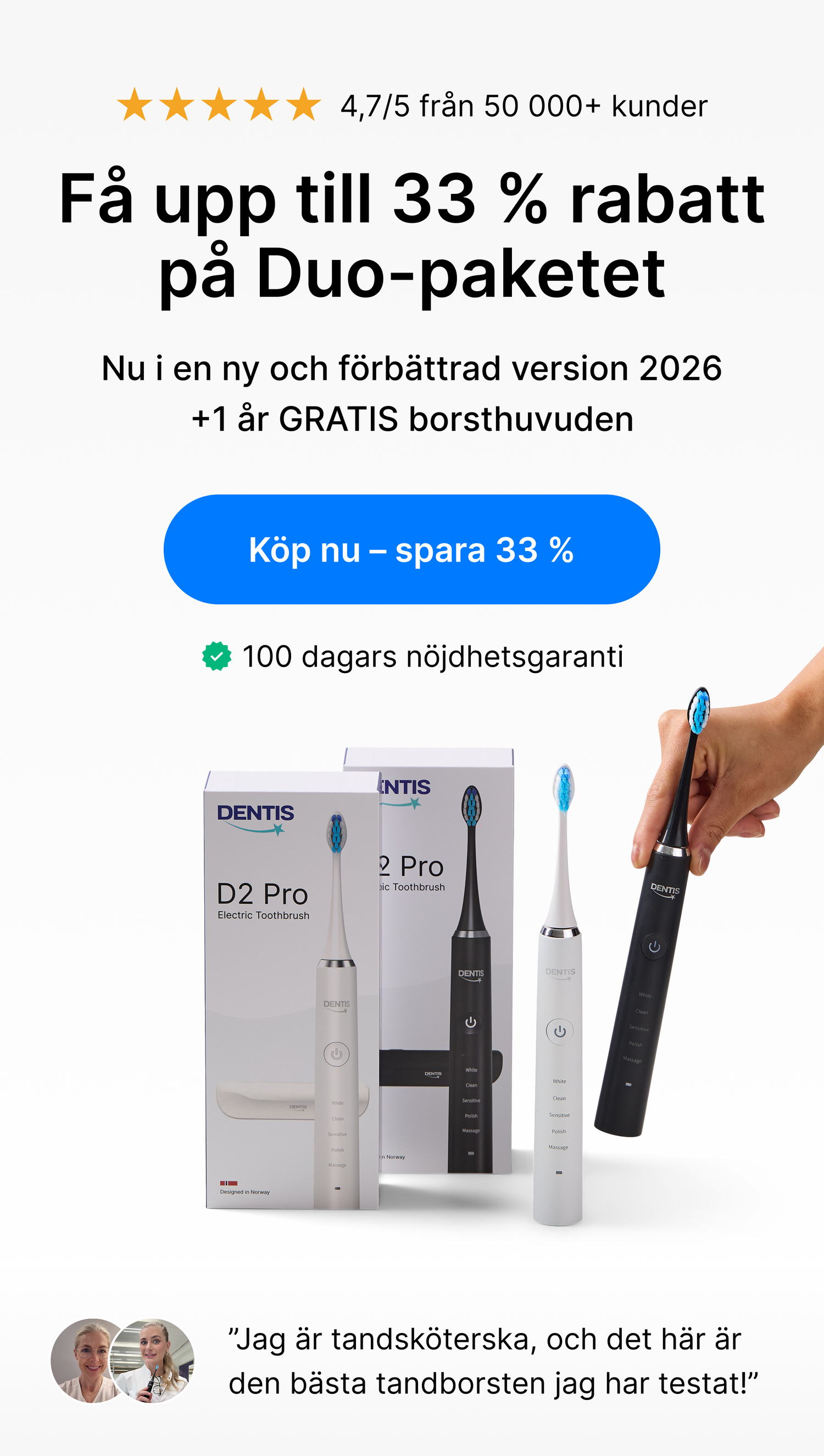 D2 Pro Elektrisk Tandborste - Svart & Vit / Duopaketet